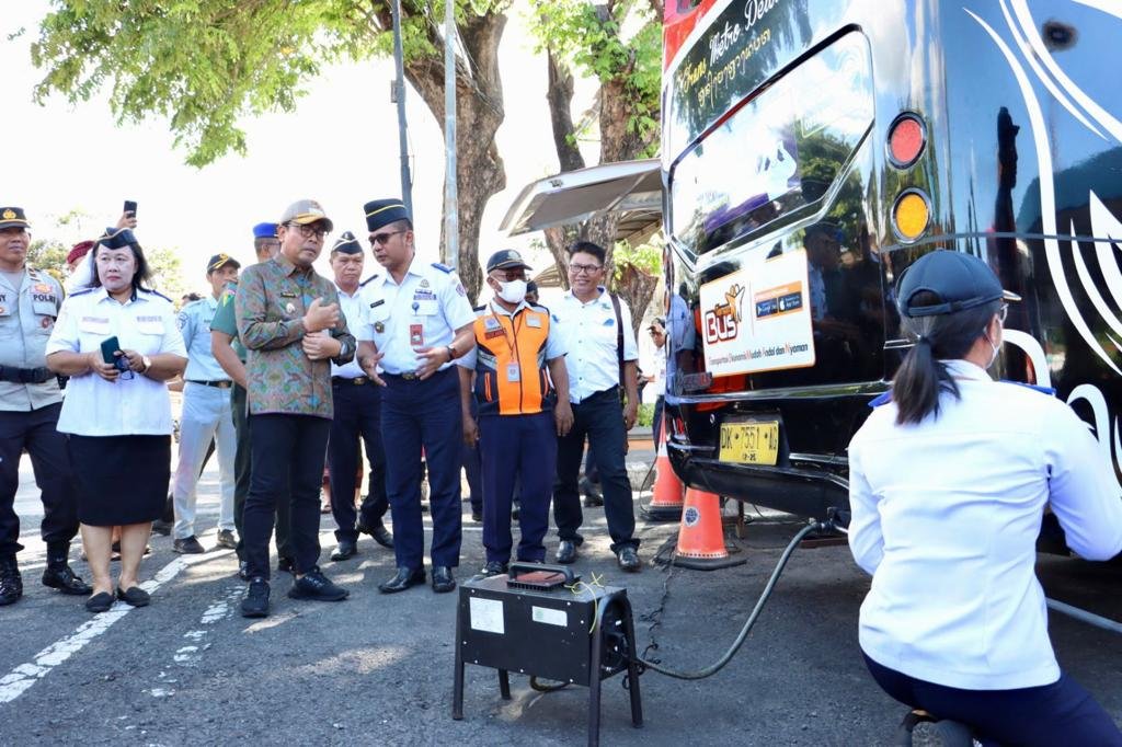 Dalam kegiatan tersebut Wakil Walikota Arya Wibawa berkesempatan menyerahkan Helm Keselamatan dan Life Jaket kepada para petugas secara simbolis, serta peninjauan uji emisi kendaran. (HumasDps/Ays)