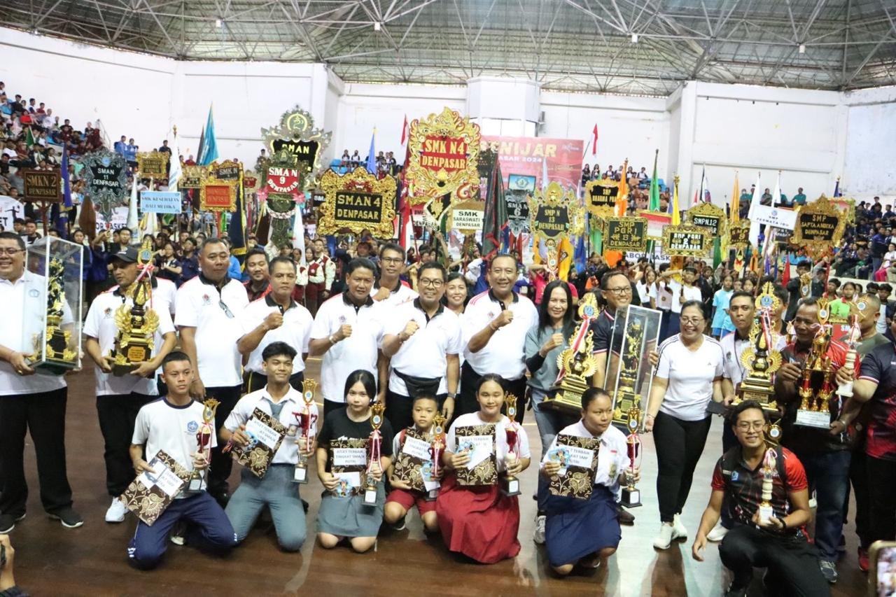 Denpasar| barometerbali- Setelah berlangsung selama sepekan, Gelaran Pekan Olahraga dan Seni Pelajar (Porsenijar) Tahun 2024 secara resmi ditutup Wakil Walikota Denpasar, I Kadek Agus Arya Wibawa di GOR Lila Buwana Denpasar, Minggu (7/4/2024). Dalam penutupan tersebut Juara Umum I cabang olahraga untuk tingkat SMA/SMK diraih SMAN 2 Denpasar, untuk tingkat SMP diraih SMPN 2 Denpasar dan Kecamatan Denpasar Selatan untuk tingkat SD. Sedangkan untuk cabang seni Juara Umum diraih SMA N 4 Denpasar untuk tingkat SMA/SMK, SMP N 2 Denpasar untuk tingkat SMP dan Kecamatan Denpasar Timur untuk tingkat SD.