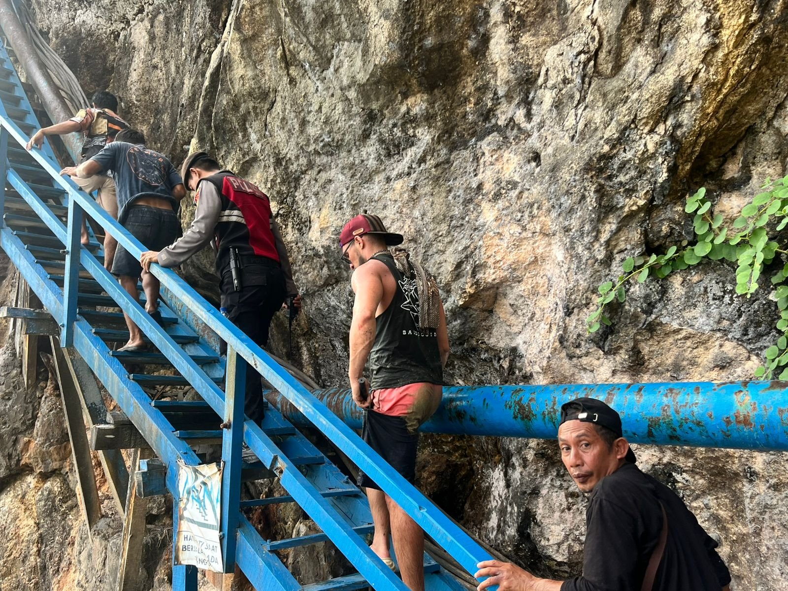 Dikarenakan tidak bisa melakukan evakuasi, pihak speed boat menghubungi Unit Siaga Pencarian dan Pertolongan Nusa Penida. “Secepatnya setelah terima informasi pada pukul 15.00 Wita, tim bergerak ke lokasi dan juga berkoordinasi dengan Polsek setempat,” imbuhnya. Sebanyak 12 personel dari Polsek Nusa Penida tiba terlebih dahulu dan bersama-sama dengan warga langsung melakukan evakuasi menggunakan bantuan tali.