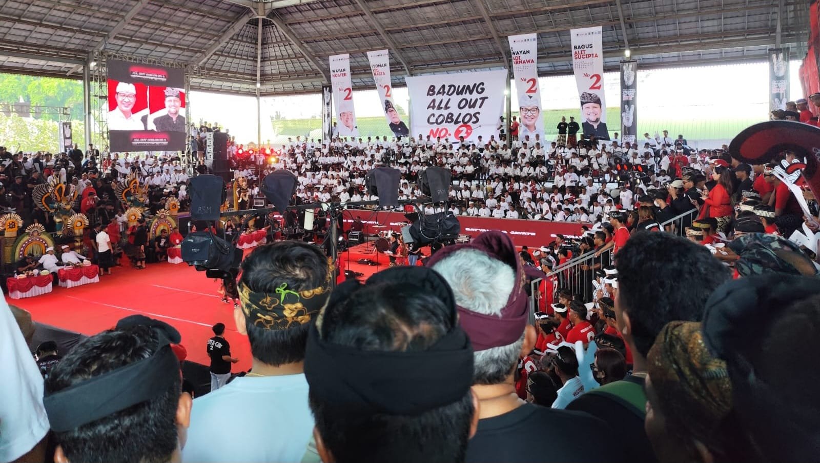 Badung | barometerbali – Puluhan ribu warga Badung penuhi wantilan Desa Sedang, Badung Bali, Minggu, 3 November 2024. Warga Badung antusias ingin bertemu dan mendengar visi misi Paslon Cagub Bali Wayan Koster dan Nyoman Giri Prasta (Koster-Giri) dan Paslon Cagub Bupati Badung Adi Arnawa dan Bagus Alit Sucipta (Adicipta). Massa melebihi target awal 10 ribu orang.