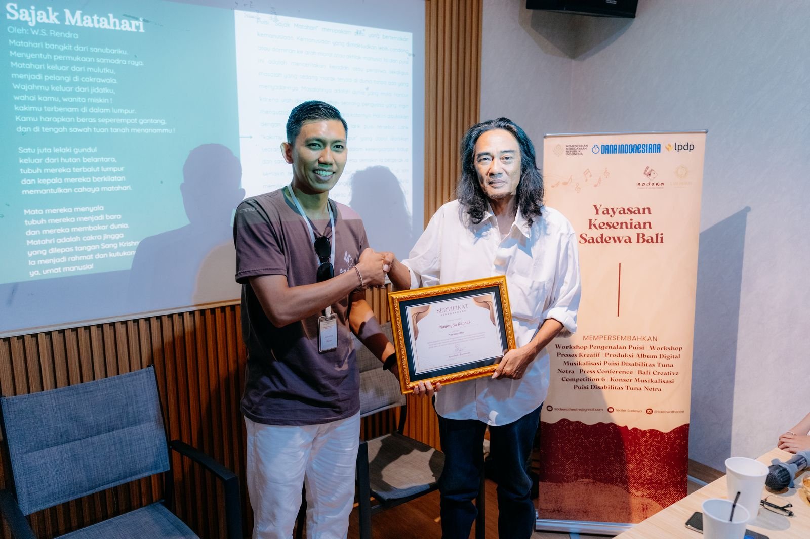 Hal inilah yang membuat Ryan Indra Darmawan, Ketua Yayasan Kesenian Sadewa Bali, atau bisa disebut Yayasan Sadewa saja, untuk menggagas acara kreatif dalam kemasan workshop bertajuk ‘Pengenalan Puisi dan Proses Kreatif’. Adapun workshop yang digelar Sabtu, 8 Februari 2025 ini, menghadirkan dua narasumber yang ahli dalam penulisan puisi dan karya kreatif. Mereka adalah Nanoq da Kansas dan Dadi Reza Pujiadi yang sudah berbagi ilmu dan pengalaman pada peserta, yaitu teman-teman dari komunitas disabilitas tuna netra.